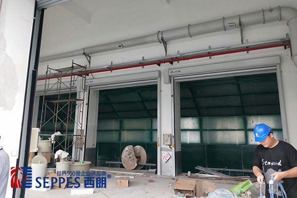 华为新建厂房堆积快速门 下图是上海市金山区湿垃圾处理设备安装于餐厨垃圾处理中心的堆积门和快速门实图。