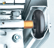 采用独特设计的滑轮支架系统,可以方便地调整滚珠轴承和胶轮,确保大门上升过程中平稳和静音。