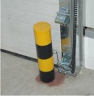 黄黑相间的实心防撞柱,有效地防止来往通行车辆对门体轨道的碰撞。