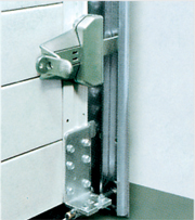 滑升门提供标准的锁体可将门体锁死,电动插销锁配有电动装置,当插销锁锁上时,电机无法工作。