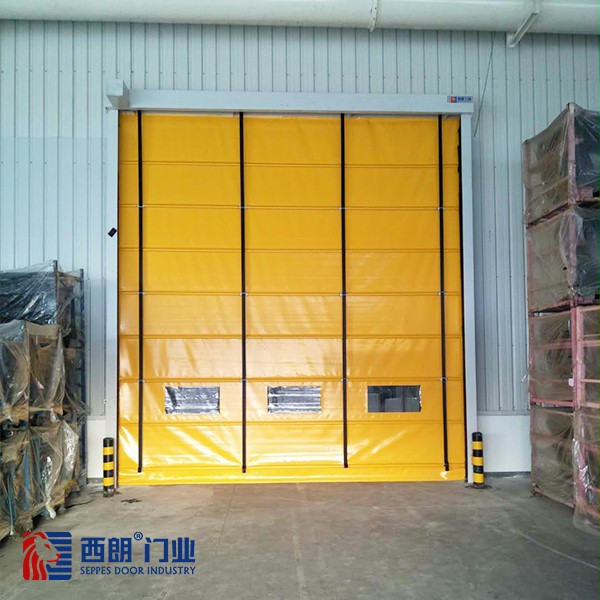 西朗门业生产的背带式快速堆积门,采用折叠式提升方式和多条内置式横向抗风杠杆,其风压可以均布于门帘整体,其抗风性能远高于普通滚筒式快速卷门,特别适合于物流通道,和大面积的洞口。插入式门帘更容易拆卸,维护更加方便。