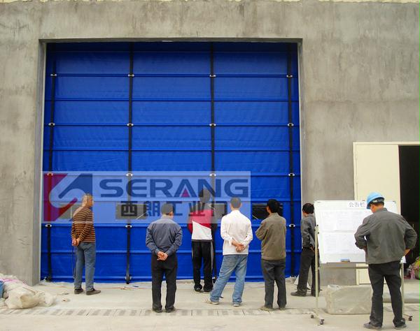 堆积式抗风快速门主要配置:加厚加固型主骨架并优质喷塑处理;2.0mm厚冷轧钢板喷塑处理门框及封罩;PVC耐磨基布门帘;多排抗风钢管肋条;门帘中下部多个透明视窗;开门速度0.8米/秒,可抗10级风。 堆积快速卷门可做60平方米的大型门,是无锡地区需要开大洞口并频繁开启出入的企业首选。