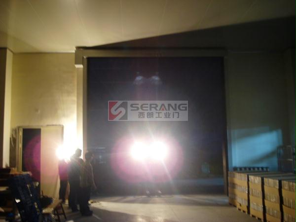 上图为:特别加固处理的苏州西朗快速堆积门,主框架采用加厚的方钢,保证坚固和抗风性能。