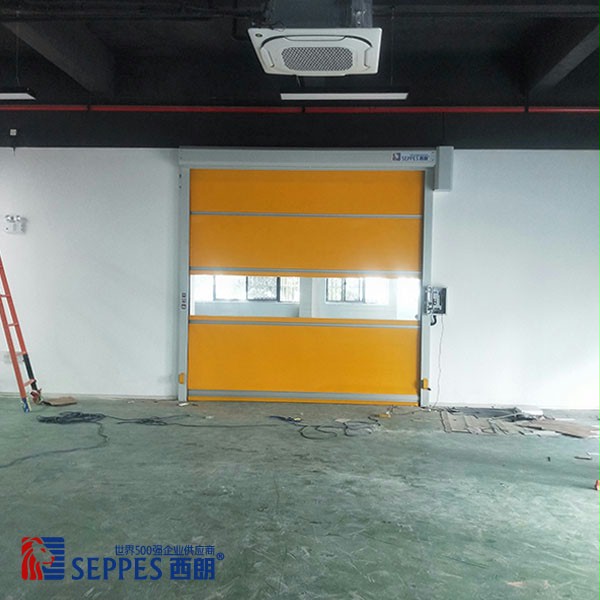西朗快速卷帘门选用的是PVC软材质的,属于高速运行的卷帘门,对于4-5米高的仓库,快速门四五秒就能打开,反应速度贼快,这样的PVC材质很耐用,不会因风吹雨打、阳光照射产生直接的破环,但它不防盗。所以用户朋友们,需要加上防盗功能的,要么另外加一道门(铝合金卷帘门、电动提升门都行),要么选择铝合金材质快速卷帘门,这样也更省事,不需要那么多门。