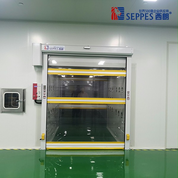 货淋室是货物进入净化车间专项使用通道,货淋室内外配两道电子互锁的快速门,起气闸室的作用,防止外界空气污染洁净室内部,减少货物进出洁净室带来污染。快速门是PVC软材质的,中间有观察视窗,多条抗风肋条,抵御因货淋吹风带来的风压。对于洁净室10pa左右压力,选择西朗普通款快速门是没有问题的。
