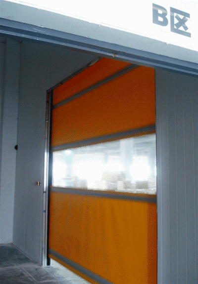 快速卷门属于自动化控制设备,由门框架,PVC门帘,驱动电机,控制系统组成。