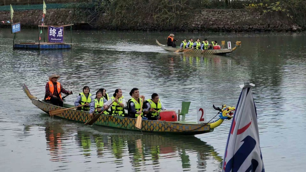 吃完具有当地特色的农家乐,我们便开始了自由活动,最先是过索桥,然后是卡丁车,再到射箭、快艇、划龙舟、攀岩等项目。在一起玩过走索桥之后,回过头来在想一开始会有些许担心、害怕,但当成功的那一刻,心中更多的是自豪与开心。再说到攀岩,这个项目的危险系数可以说是所有项目中最大的,对每个人都是一个挑战,不少同伴都说回去之后可要好好锻炼了。