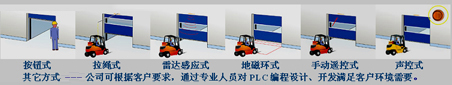 标准按钮带急停开关的按钮盒,并可另选:雷达感应 /地磁环感应/拉绳开关/遥控开启等方式。