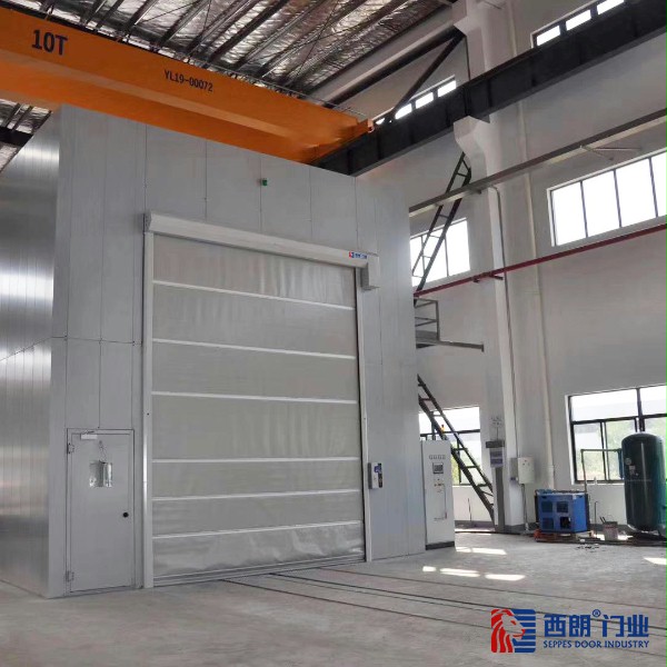12.密封性能:底端装有加重进口PVC帘布,可与各种不平的地面紧密结合,外包布的橡皮隔气帘。