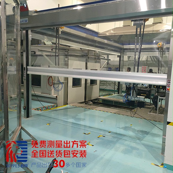 设备防护安全卷帘门是一种安装在加工设备上的PVC软质快速卷帘门。能与设备的控制系统进行联动作业,可很大幅度的提升设备的工作效率。门框上装有红外保护安全装置,对人员保护起着很重要的作用,避免对人员造成伤害。
