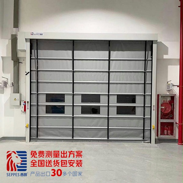 堆积快速门可快速实现门帘开启与关闭,有效的防止空气的对流,节约建筑能耗。使建筑内部保持洁净的工作环境,防止灰尘进入。高效、快速的实现车辆及人员通过,无需等待。