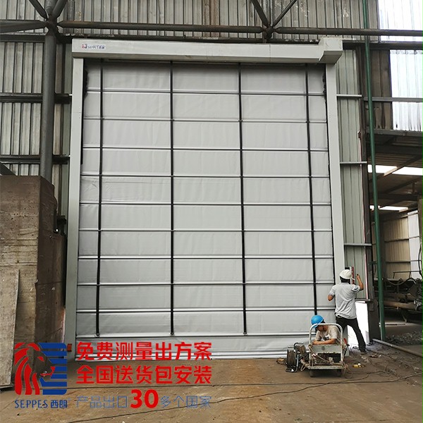 大型抗风堆积式快速门是指门洞的宽度、高度尺寸大于4米以上的大门,西朗大型快速门的学名是背带式堆积门,内置抗风钢管,内径在30mm,这个是抵抗强风、大风的关键。
