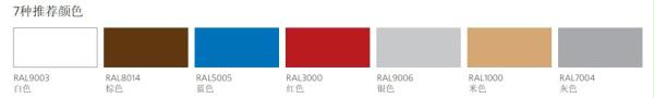 根据RAL标准,SERANG可以为您配置任何一款颜色。8种标准颜色: