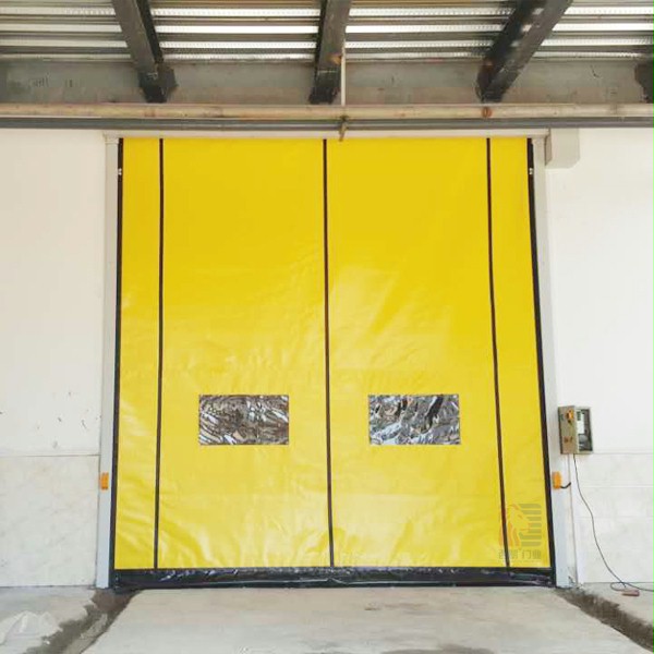 门帘:帘布分段制造,每段高度约为700mm左右,各段帘布经过特制的铝质抗风条联接成一整体帘布,帘布厚1.2mm,具有强度高、抗冲击、不易刺穿等优点。还可选用δ=2mm的透明PVC资料制造帘布或部份选用透明PVC资料制造帘布,以便察看软帘门两侧的状况,在帘布的底部设有铝质底梁,及防撞软袋帘布的顶部经过螺钉和压条固定在卷筒上。